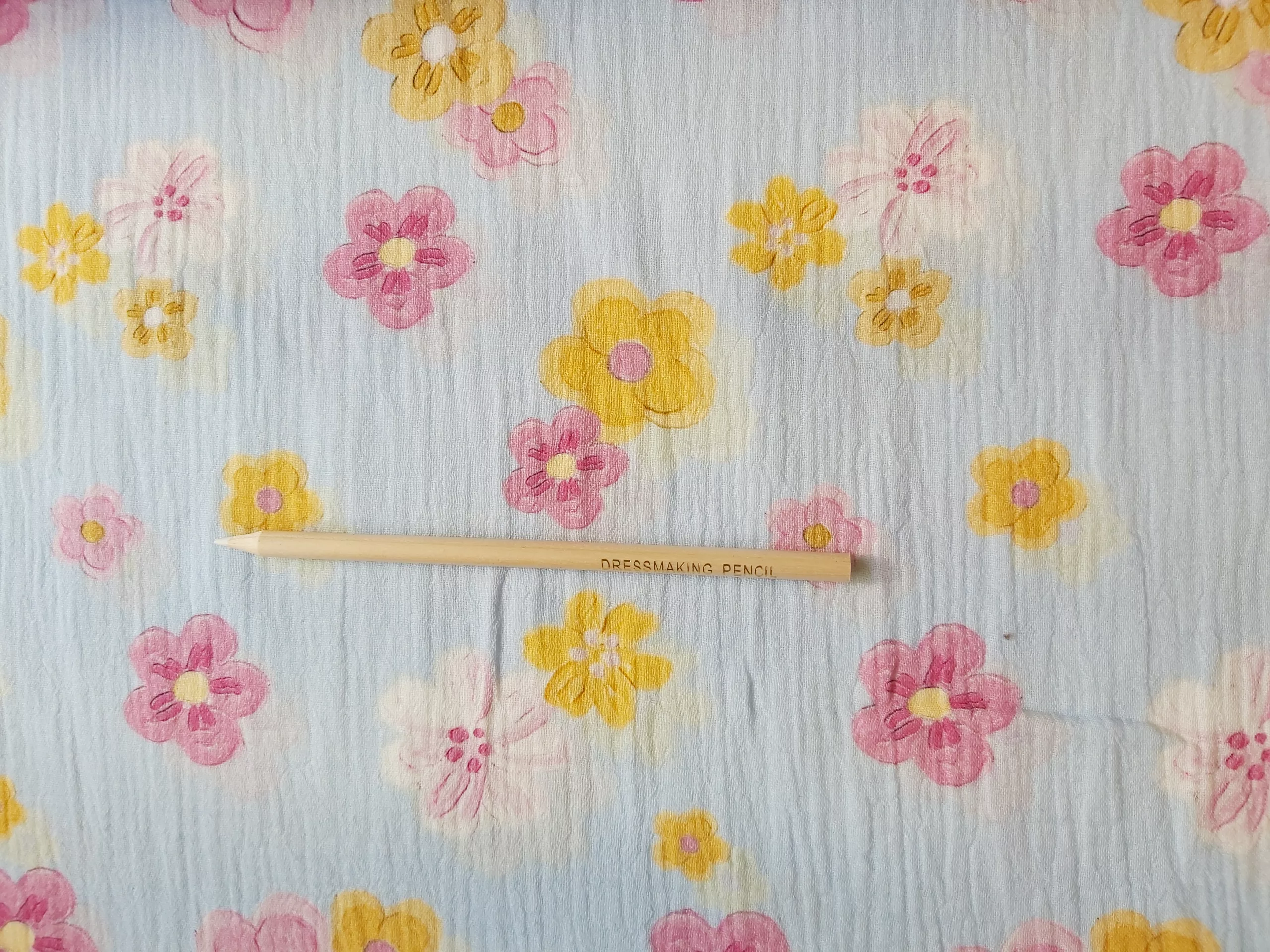 A lightweight but slightly opaque blue fabric in pure 100% cotton. Soft to the touch and excellent for children’s projects. This fabric is washable at 30°C and is approximately 140cm/55″ wide.
