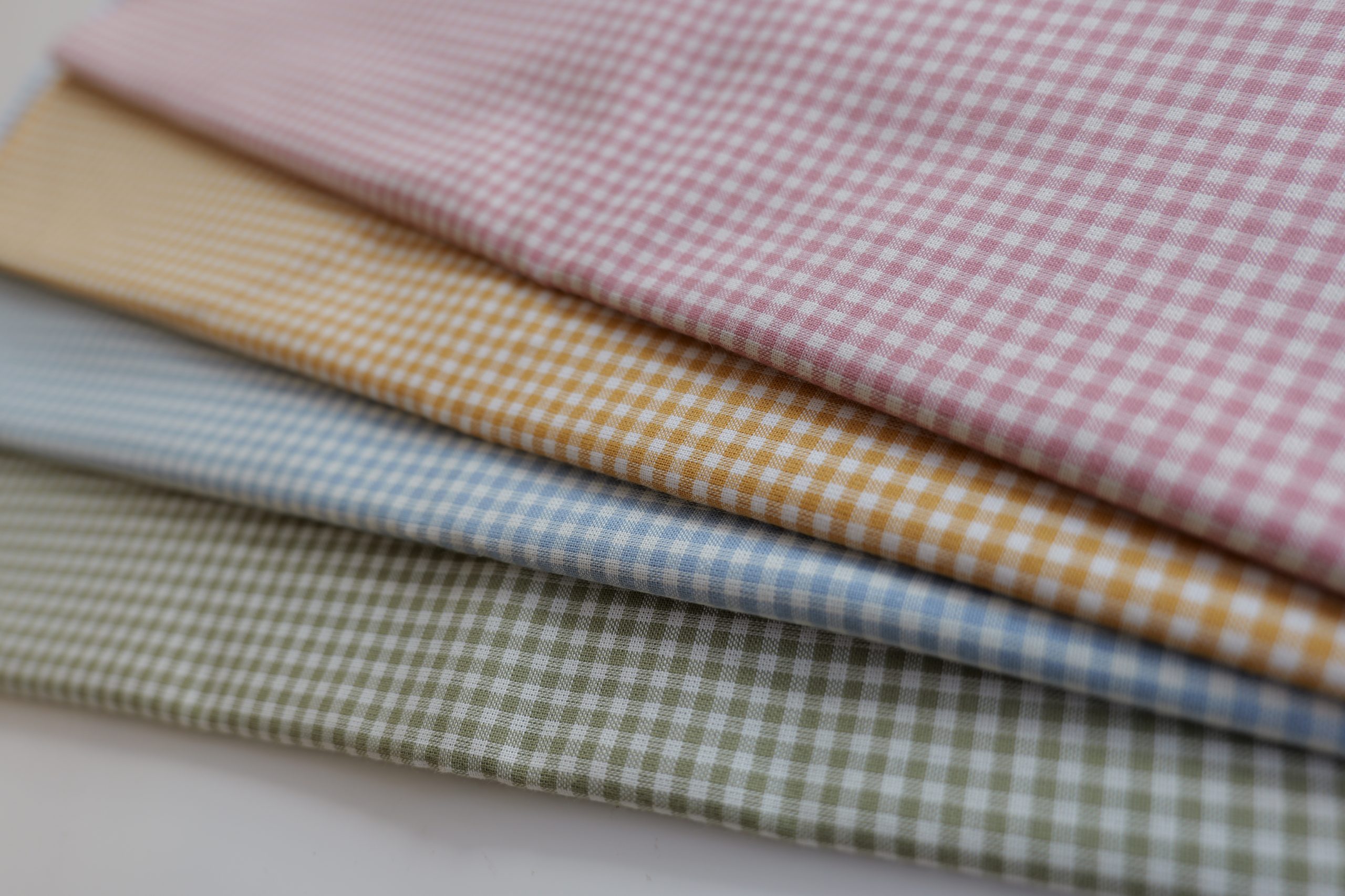 Using our ‘Gingham Heaven’ kit, make 4 hair scrunchies using a selection of 100% cotton gingham fabrics in four pastel colour ways: pink, blue, green and yellow.
