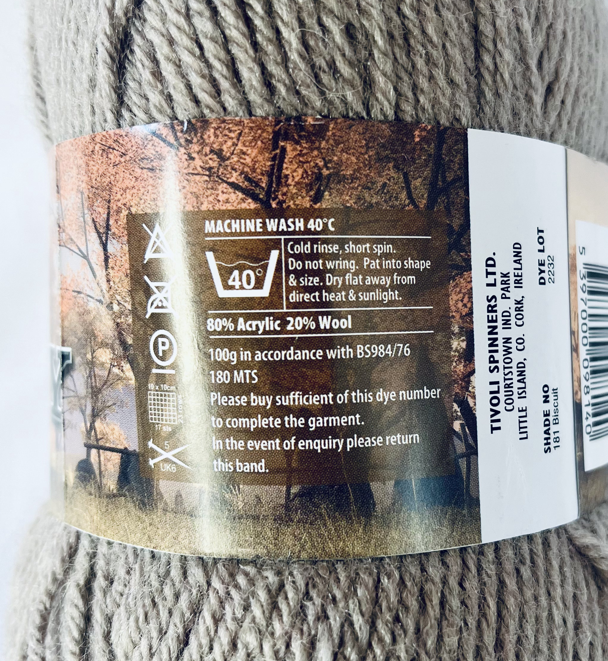 Tivoli Country Aran Wool – 20% Wool / 80% Acrylic