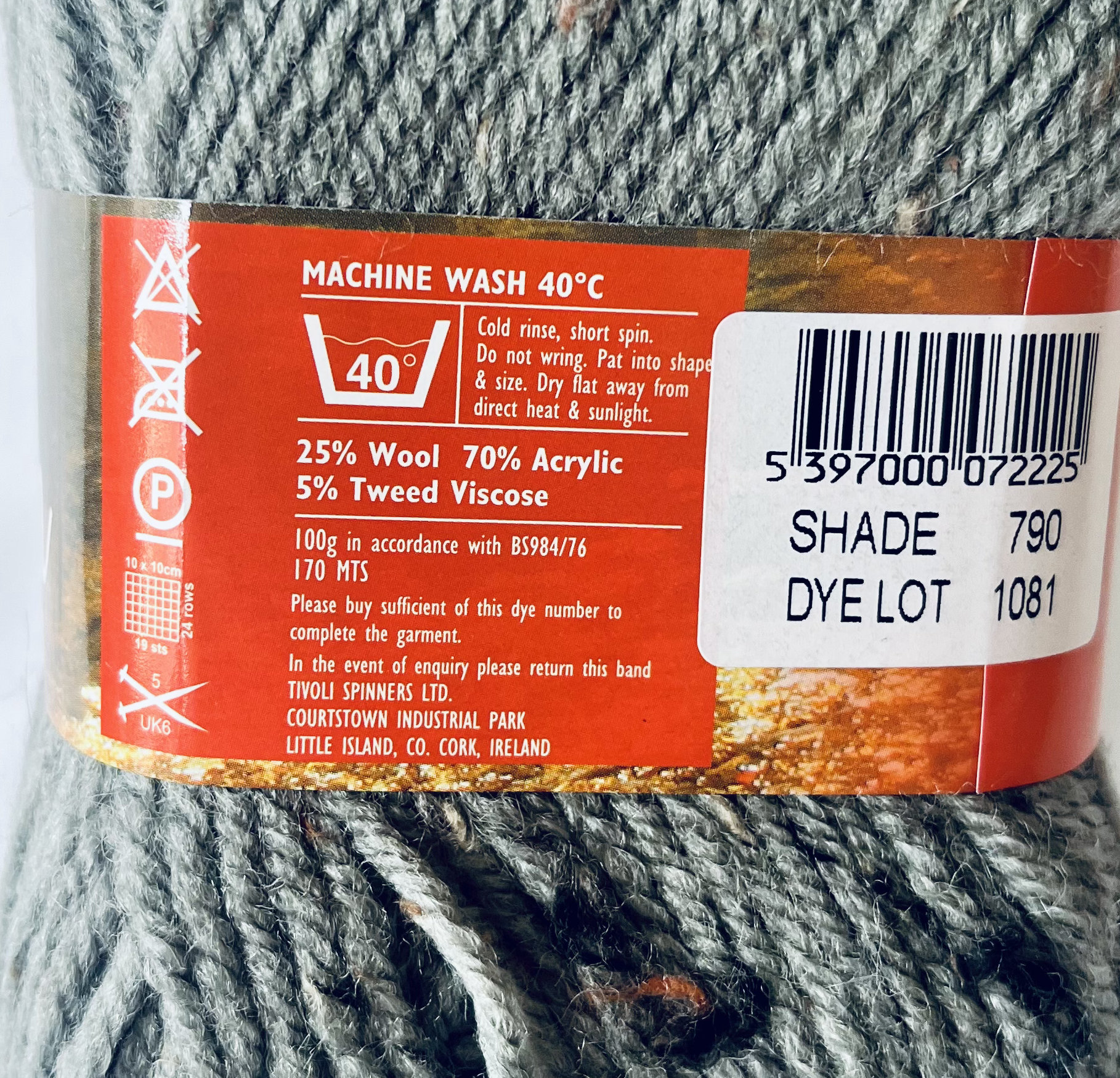 Tivoli Tweed Aran Wool Grey Fleck – 25% Wool / 70% Acrylic / 5% Tweed Viscose